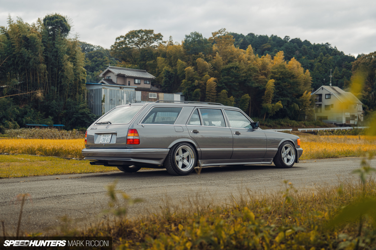 Later this week, we’ll introduce you to Higuchi-san’s W126 Mercedes 500TE – a customized Benz that’s been reworked from a four-door sedan right into a five-door property, one thing by no means supplied by the manufacturing facility. And simply to prime it off, it’s been fitted with an SEC entrance finish. Critically, take a look at how cool this factor sits…